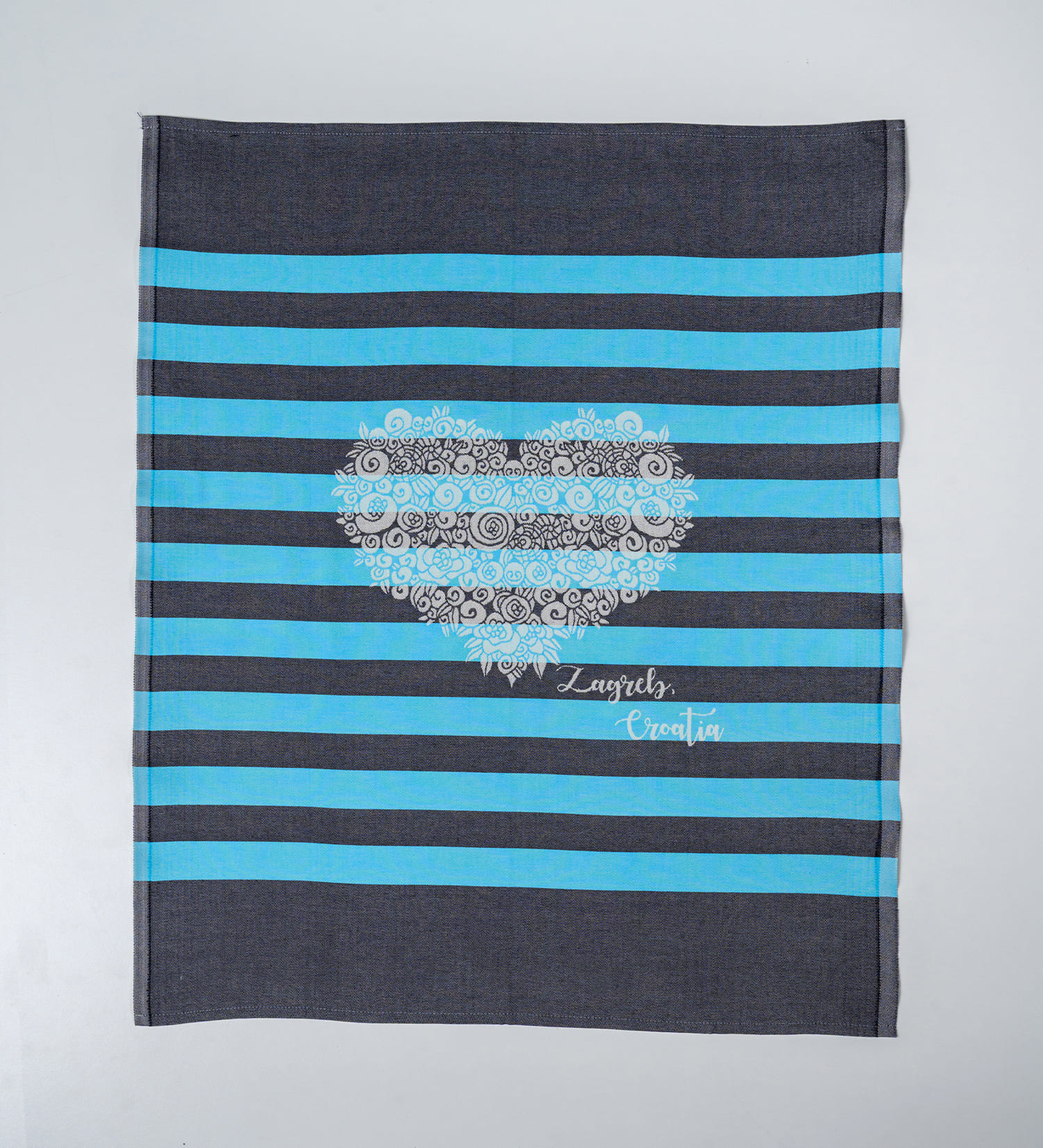 Kuhinjski ručnik – Love Zagreb Croatia, tirkizno crna