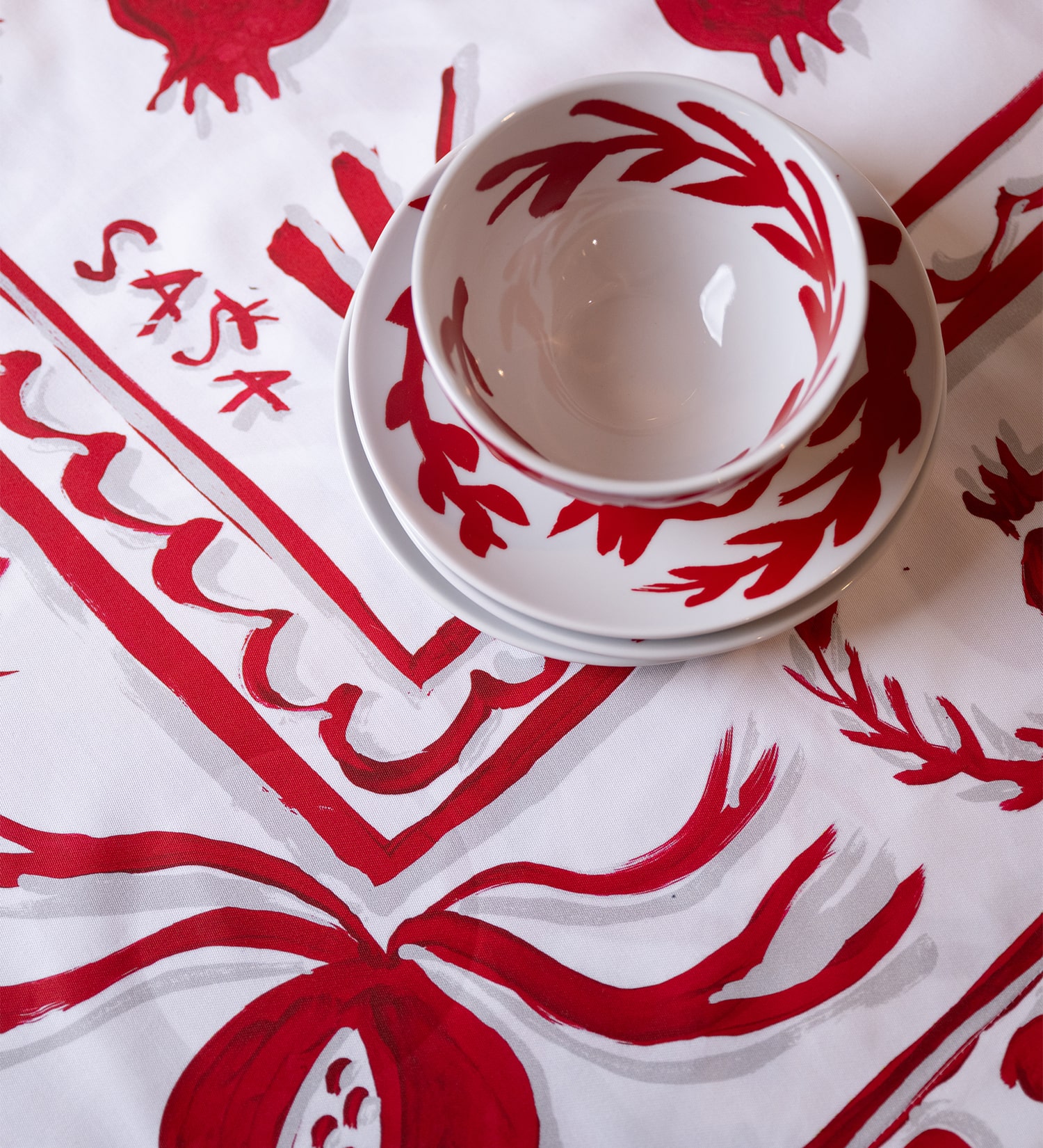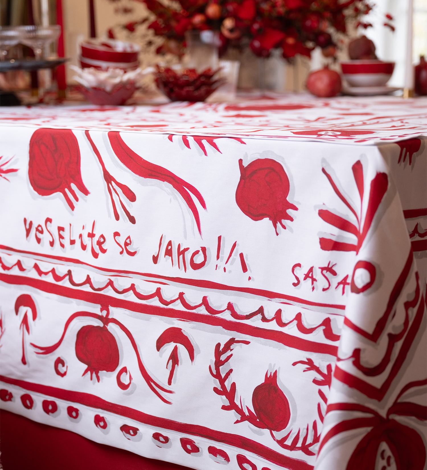 Stolnjaci by Saša rezultat su suradnje Merle i Saše Šekoranje iz božićne kolekcije Puna vreća sreće. Poseban fokus stavljen je na izbor materijala i načina bojanja kako bi se vjerno prenio umjetnički potez Saše Šekoranje i zadovoljili visoki Merlini standardi.  Šekoranjina inspirativna umjetnička vizija i Merlina stručnosti u izradi vrhunskog damasta rezultirao je kolekcijom koja predmete za kućanstvo transformira u pravo umjetničko djelo.